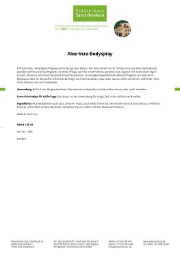 Erfrischendes, vielseitiges Pflegespray für den ganzen Körper. Der hohe Anteil von 92 % Aloe-Vera-Gel (Aloe barbadensis) spendet wohltuende Feuchtigkeit und milde Pflege, auch für empfindliche, gereizte Haut. Ergänzt mit wertvollem Algen-Extrakt, Allantoin und einem besonders hautfreundlichen, feuchtigkeitsbewahrenden Wirkstoff eignet sich Aloe-Vera-Bodyspray ideal für die sanfte, erfrischende Pflege nach dem Sonnenbad, Sport oder Saunabesuch.