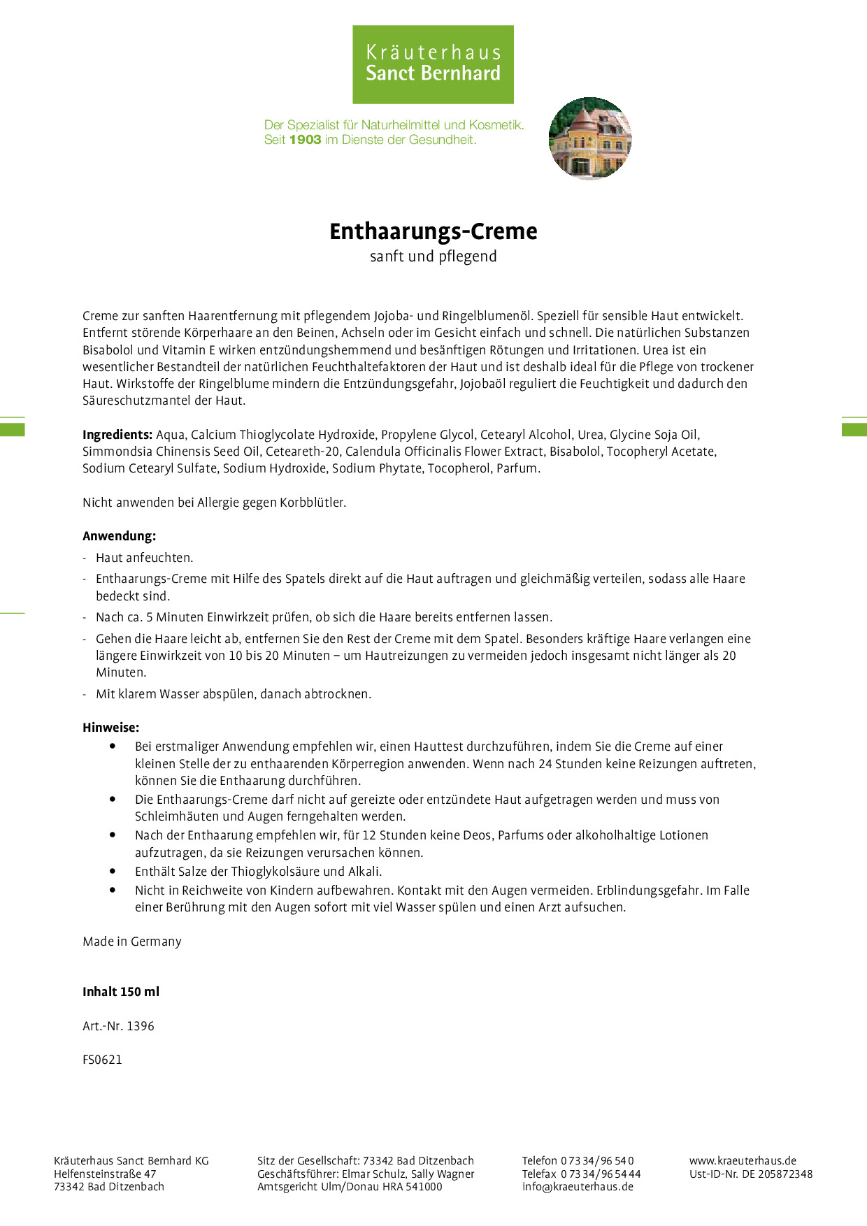 Wir, das Kräuterhaus Sanct Bernhard, sind ein traditionelles Familienunternehmen mit Sitz auf der schwäbischen Alb. Seit 1903 stellen wir hochwertige Nahrungsergänzungsmittel, Körperpflegeprodukte und Naturheilmittel her. Qualität wird bei uns großgeschrieben, denn Ihre Gesundheit liegt uns am Herzen.