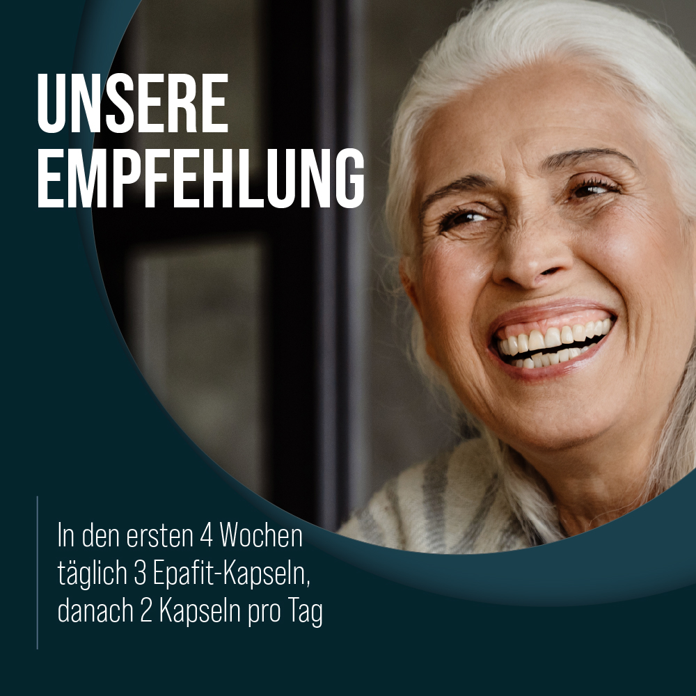Wir empfehlen, in den ersten 4 Wochen täglich 3 Epafit-Kapseln, danach 2 Kapseln pro Tag einzunehmen.