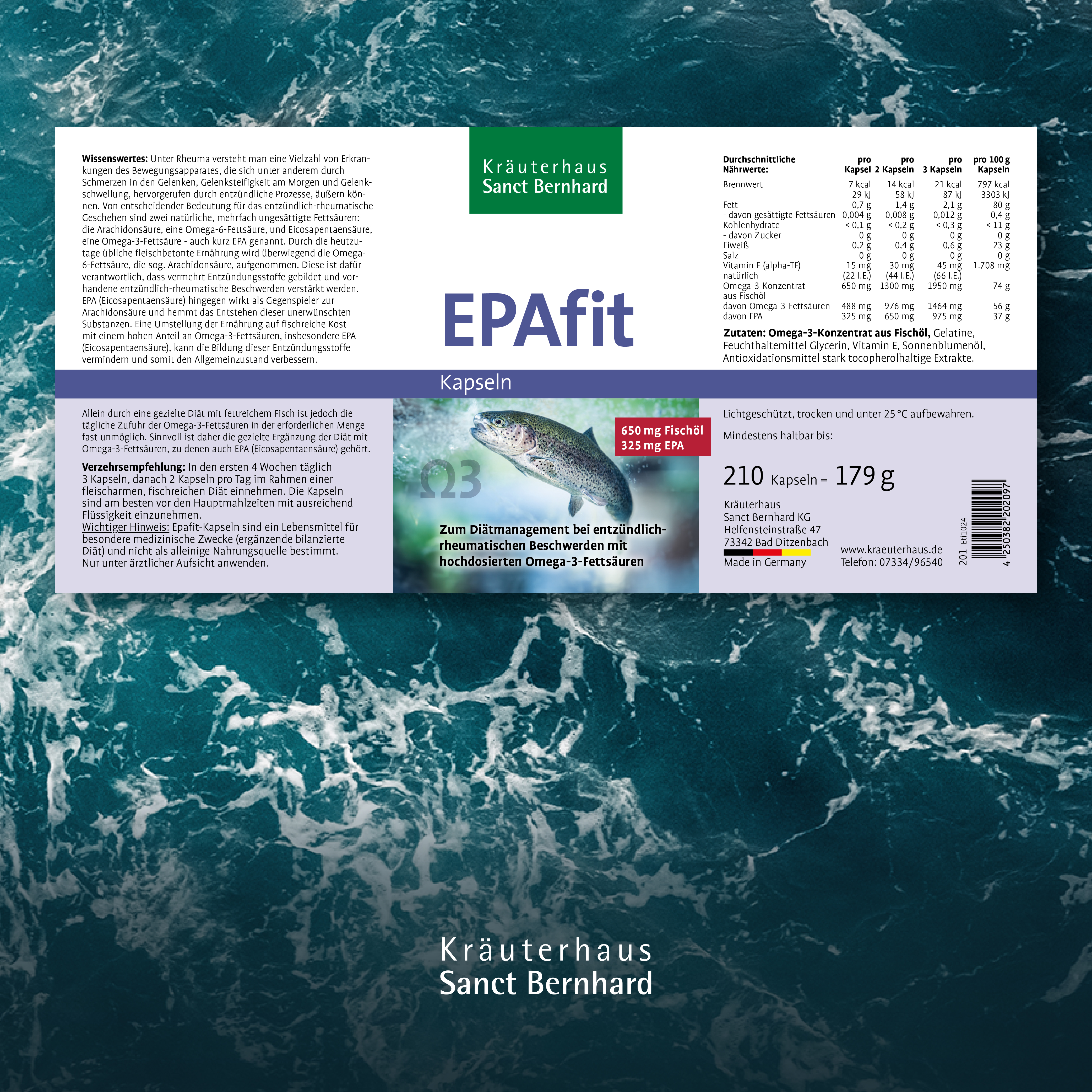 - Epafit-Kapseln enthalten 650 mg Omega-3-Konzentrat aus Fischöl mit mindestens 75 % konzentrierten Omega-3-Fettsäuren