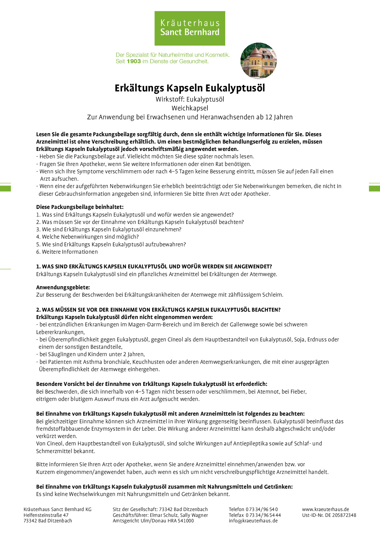 Erkältungs-Kapseln Eukalyptusöl enthalten 100 mg natürliches Eukalyptusöl, das über die Blutbahn in die oberen Atemwege gelangt und so wie eine Inhalation von innen wirkt.