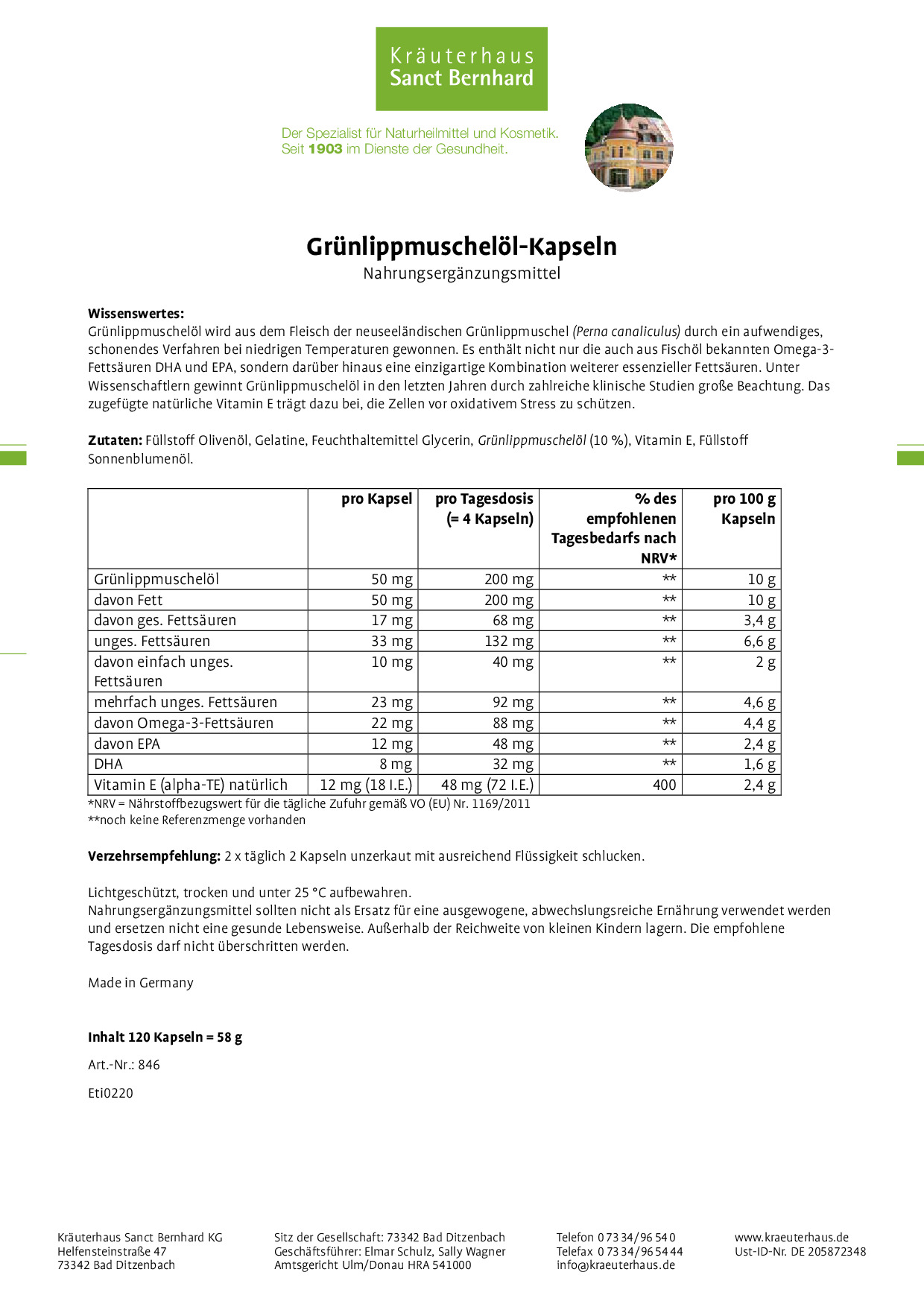 Wir, das Kräuterhaus Sanct Bernhard, sind ein traditionelles Familienunternehmen mit Sitz auf der schwäbischen Alb. Seit 1903 stellen wir hochwertige Nahrungsergänzungsmittel, Körperpflegeprodukte und Naturheilmittel her. Qualität wird bei uns großgeschrieben, denn Ihre Gesundheit liegt uns am Herzen.