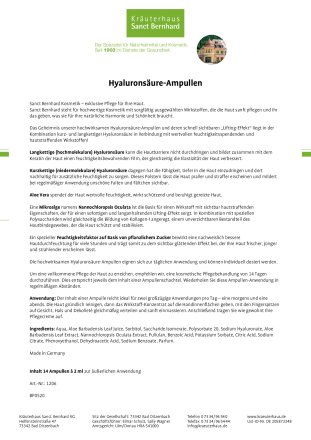 Wir, das Kräuterhaus Sanct Bernhard, sind ein traditionelles Familienunternehmen mit Sitz auf der schwäbischen Alb. Seit 1903 stellen wir hochwertige Nahrungsergänzungsmittel, Körperpflegeprodukte und Naturheilmittel her. Qualität wird bei uns großgeschrieben, denn Ihre Gesundheit liegt uns am Herzen.