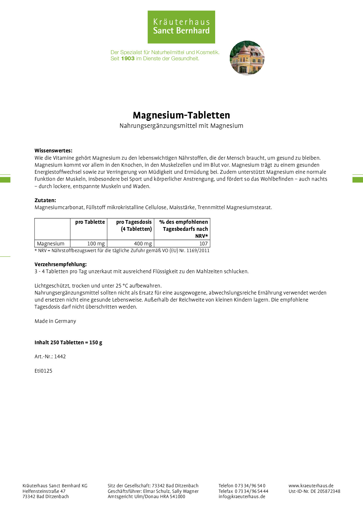 - Jede Tablette mit 100 mg reinem Magnesium