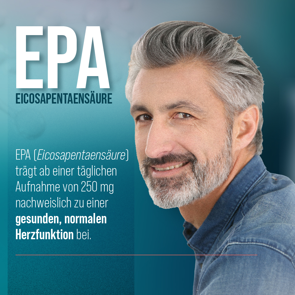 Wichtige Vertreter der Omega-3-Fettsäuren sind DHA (Docosahexaensäure) und EPA (Eicosapentaensäure), die nachweislich zu einer gesunden, normalen Herzfunktion beitragen (ab einer täglichen Aufnahme von 250 mg).
