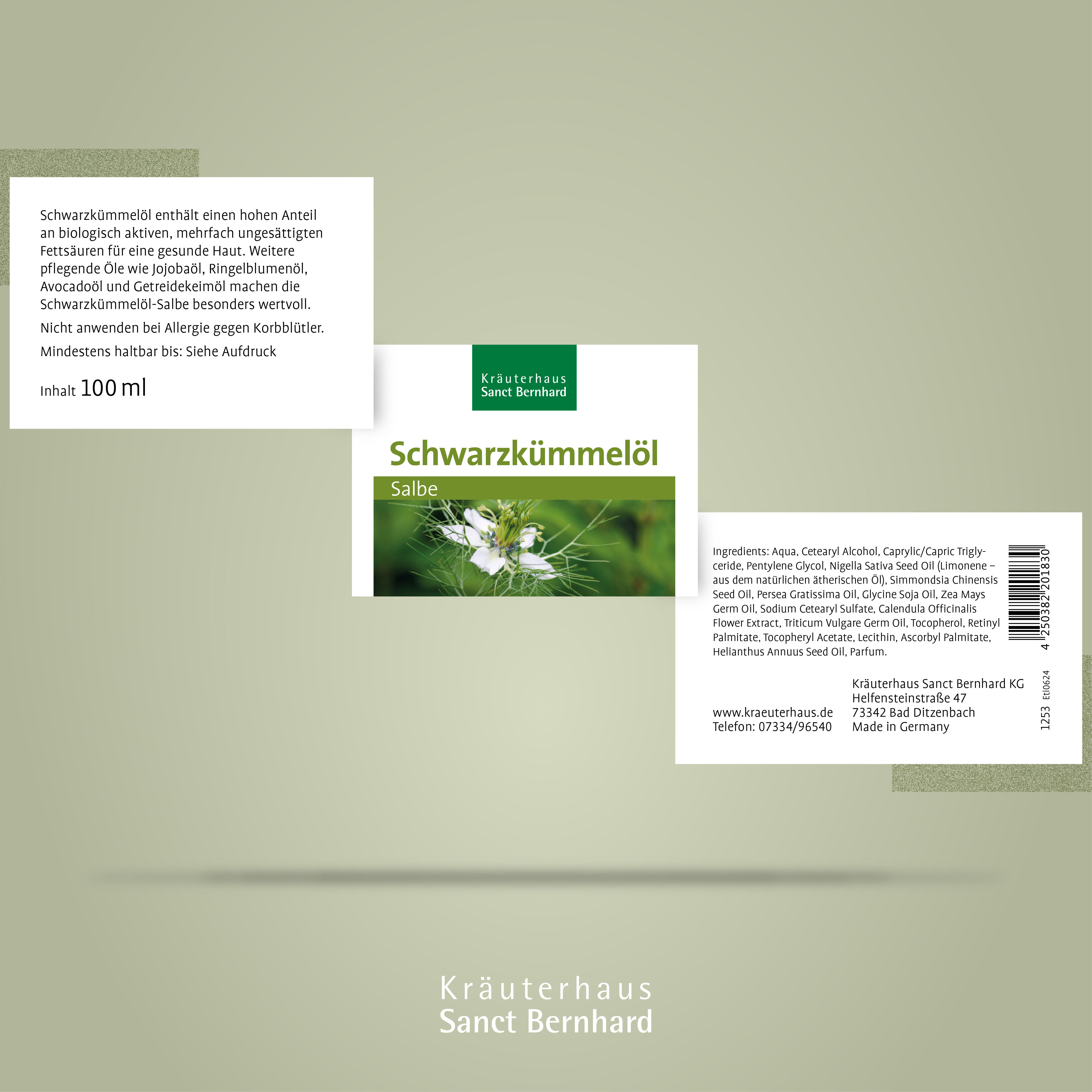 Schwarzkümmelöl enthält einen hohen Anteil an biologisch aktiven, mehrfach ungesättigten Fettsäuren für eine gesunde Haut. Weitere pflegende Öle wie Jojobaöl, Ringelblumenöl, Avocadoöl und Getreidekeimöl machen die Schwarzkümmelöl-Salbe besonders wertvoll.