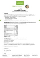 Zusammensetzung: Magermilchpulver, Hefeerzeugnisse 20 % (enthält Mannanoligosaccharide), Mariendistelsamenpulver 13 %, Methylsulfonylmethan (MSM), Artischockenkonzentrat 2 %, Magnesiumstearat.