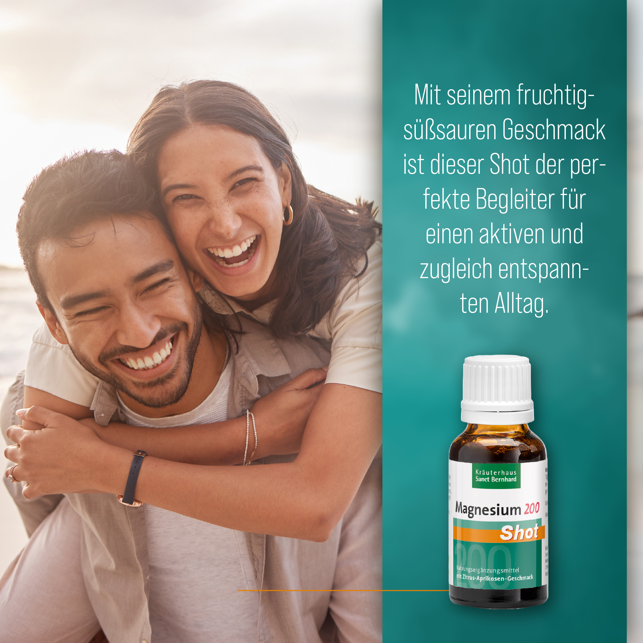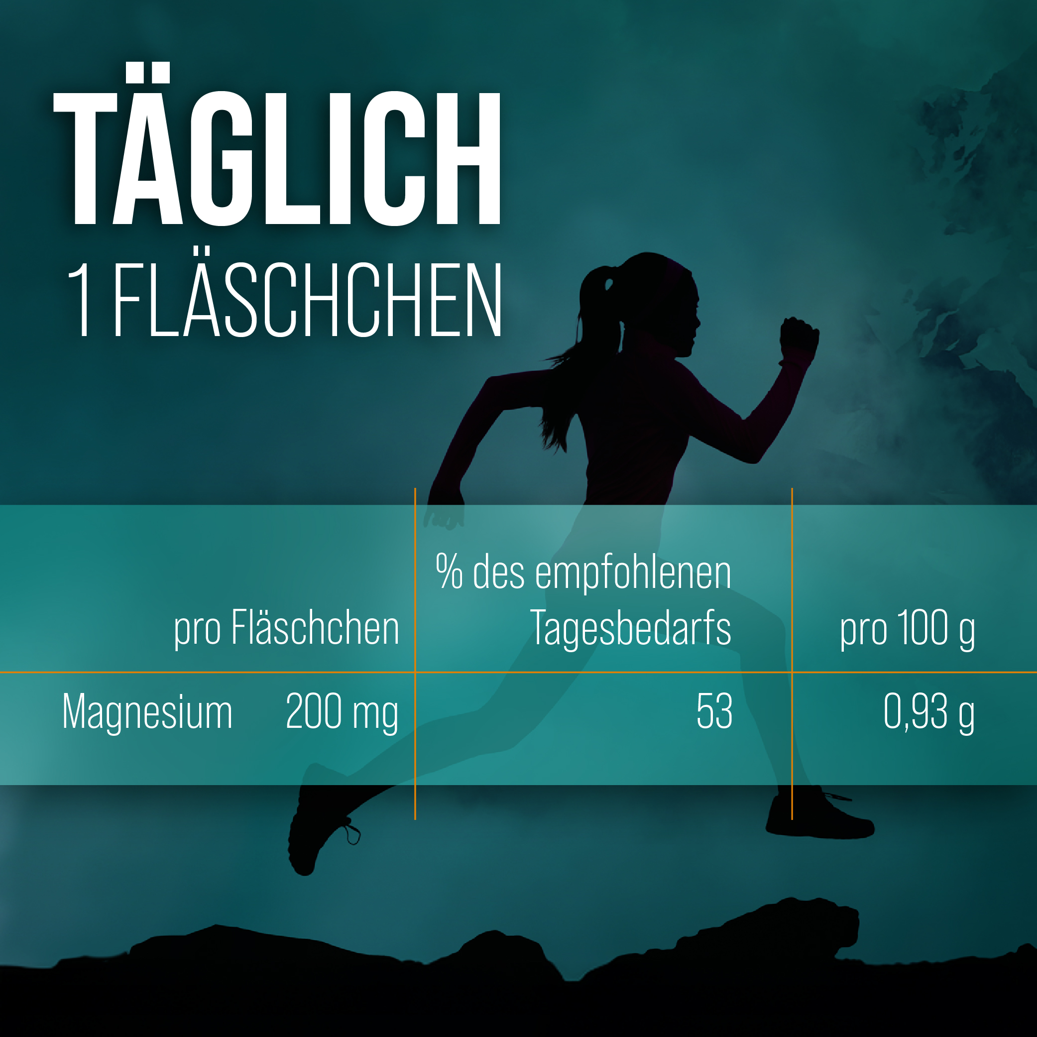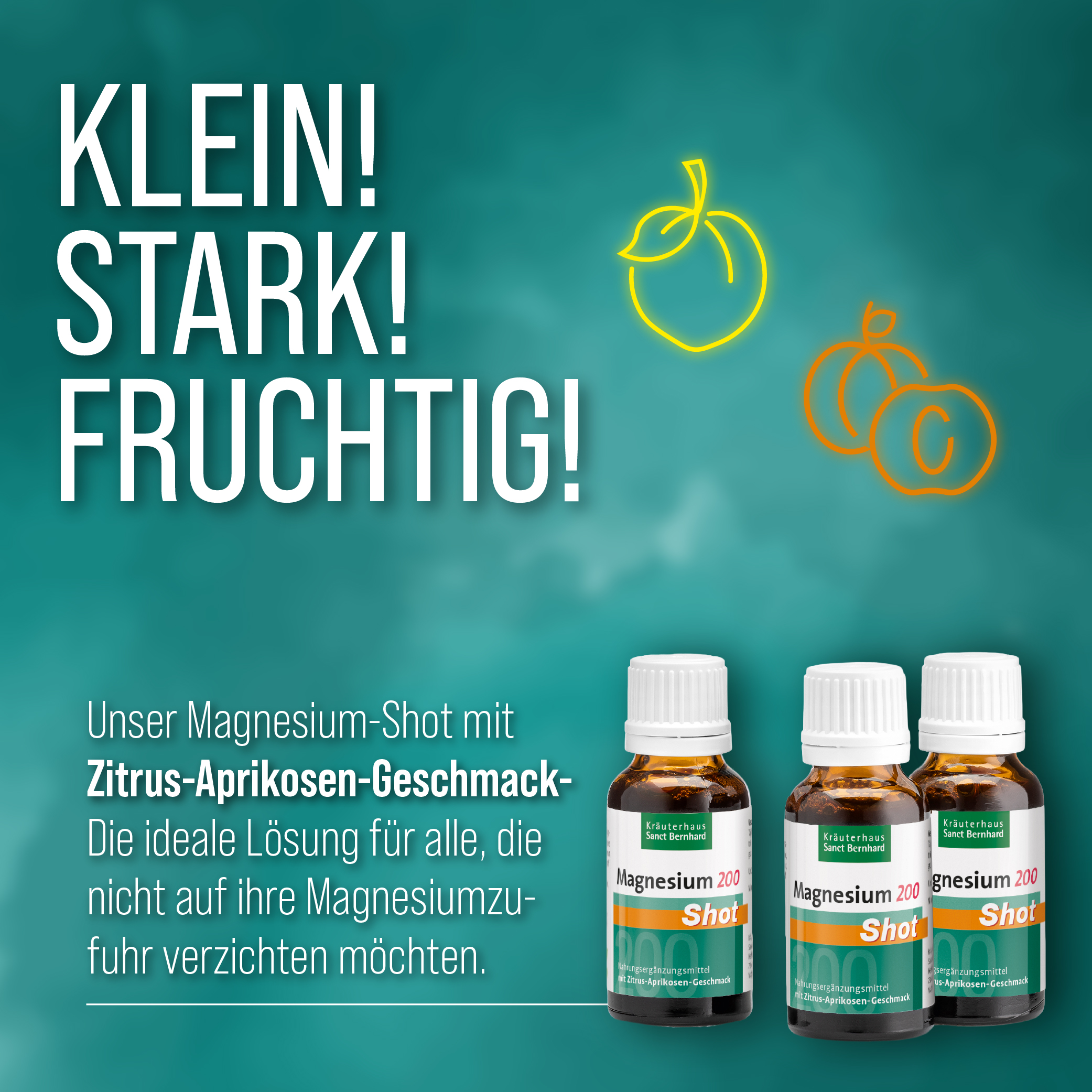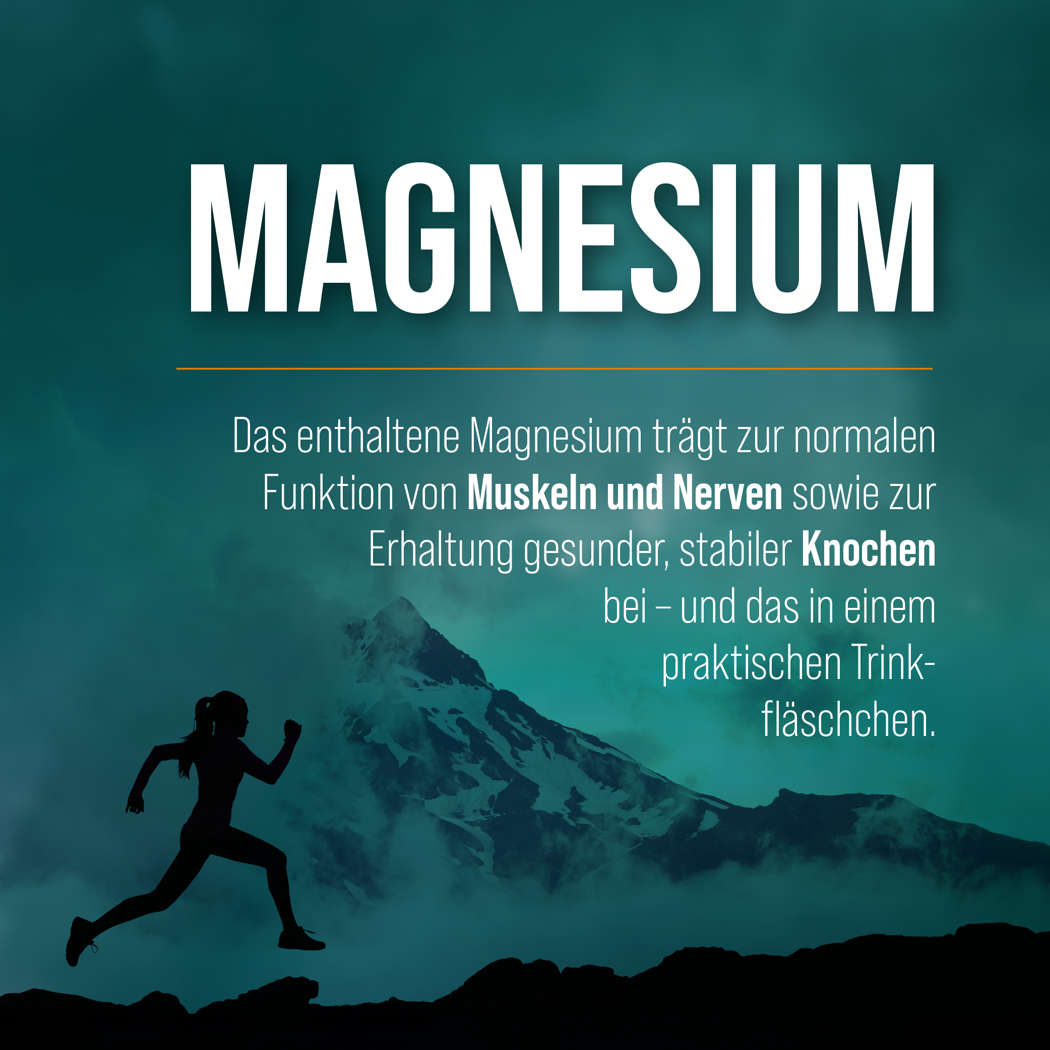 Klein! Stark! Fruchtig! Unser Magnesium-Shot mit Zitrus-Aprikosen-Geschmack ist die ideale Lösung für alle, die auch unterwegs nicht auf ihre Magnesiumzufuhr verzichten möchten. Das enthaltene Magnesium trägt zur normalen Funktion von Muskeln und Nerven sowie zur Erhaltung gesunder, stabiler Knochen bei – und das in einem praktischen Trinkfläschchen, jederzeit bereit. Mit seinem fruchtig-süßsauren Geschmack ist dieser Shot der perfekte Begleiter für einen aktiven und zugleich entspannten Alltag.