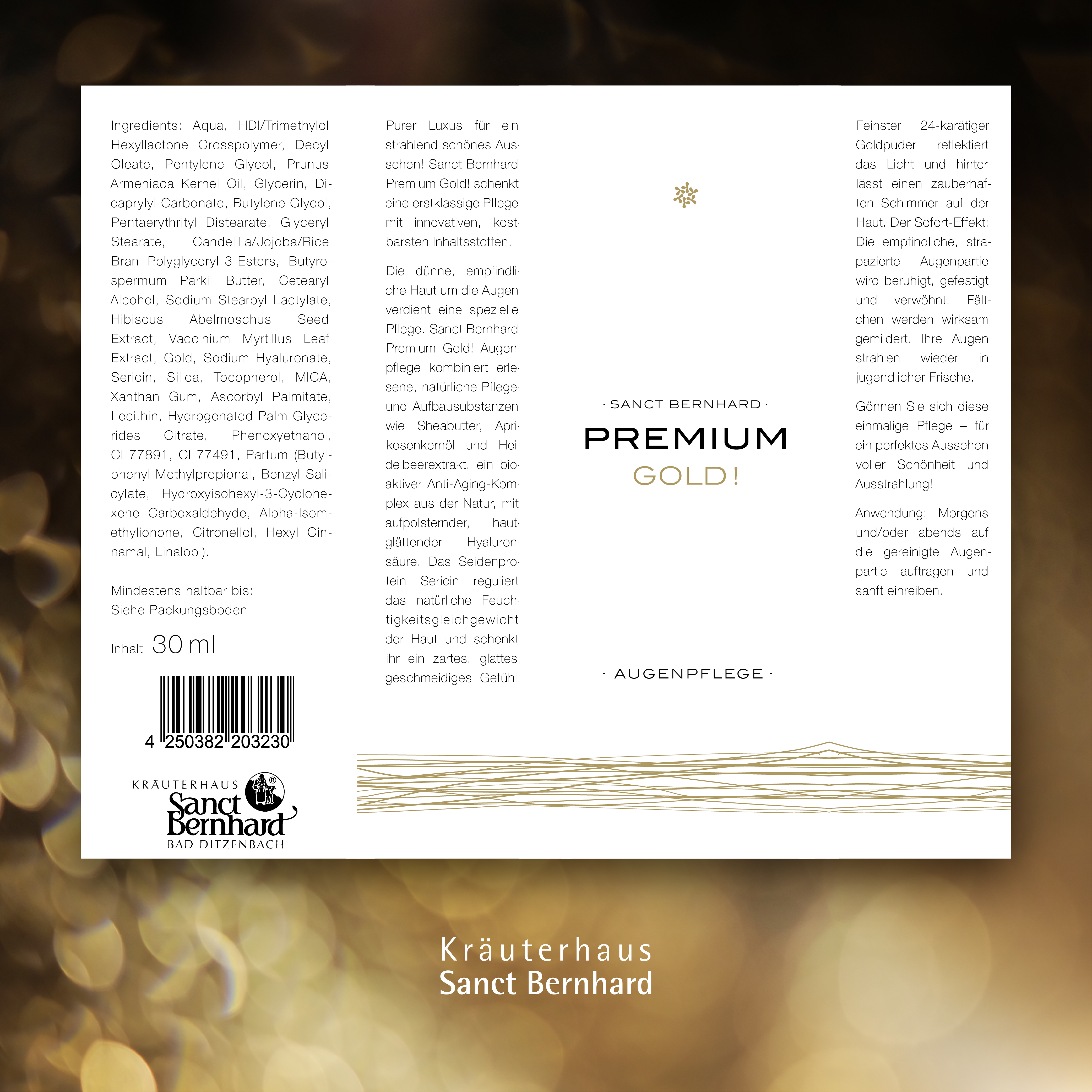 - Premium Gold! Augenpflege umhüllt die Augenkontur wunderbar zart und bewirkt ein Wohlgefühl und sanftes Frischeempfinden
